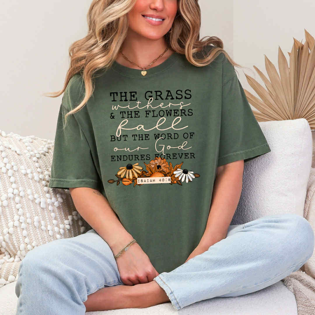 "The grass withers and the flowers fall, but the word of our God endures forever."