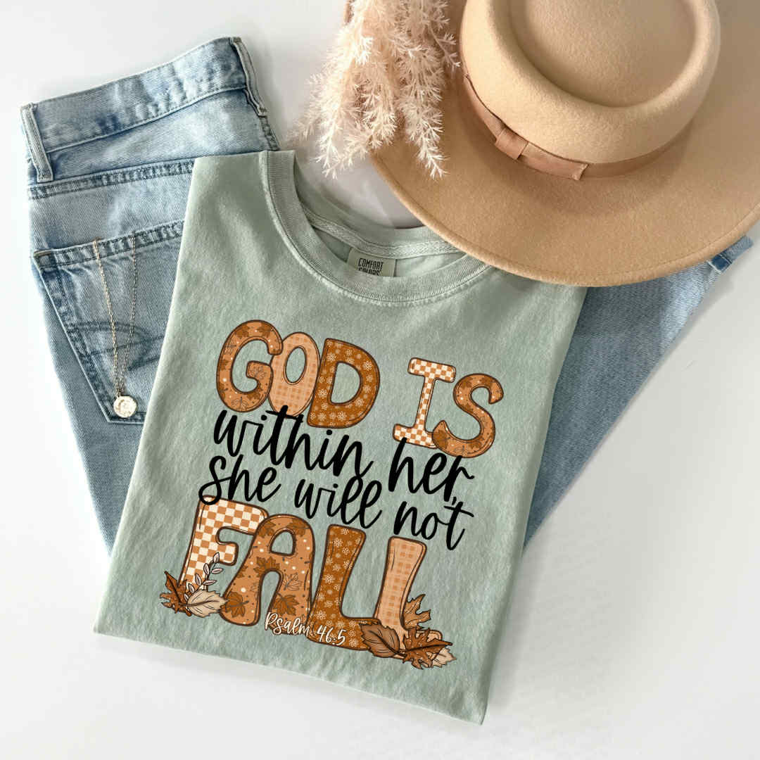 Celebrate strength and scripture with this cozy and uplifting fall tee! πβ¨ Featuring the powerful verse from Psalm 46:5, "God is within her, she will not fall," this shirt is the perfect reminder of unshakable faith. Designed in warm autumn tones with playful patterns and seasonal florals, itβs both stylish and soul-filling.